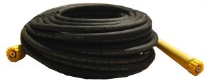 Hochdruckreinigerschlauch passend für Kärcher, mit 2 Überwurfmuttern 22x1,5 mm, oder passend für Kärcher, mit 1 Überwurfmutter 22x1,5mm und 1 Stecknippel 10 mm, oder passend für WAP, mit 2 Überwurfmuttern 21x1,5 mm, oder passend für WAP, mit 2 Überwurfmuttern 18x1,5 mm, in schwarz, schwarz kunststoffummantelt und in blau.